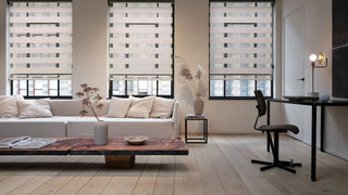 וילונות דאבל רולר מעוצבים עם שתי שכבות בד הנעות זו על גבי זו, ומשלבות רצועות שקופות ואטומות לסירוגין בתוך וילון אחד